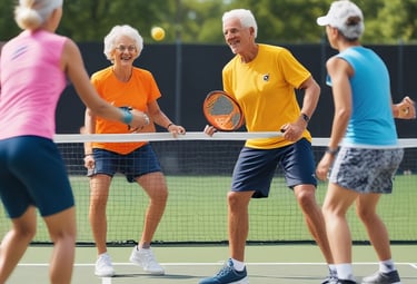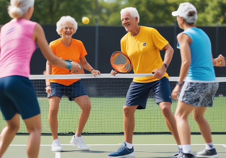 Aulas de pickleball com um professor qualificado, promovendo saúde e diversão.